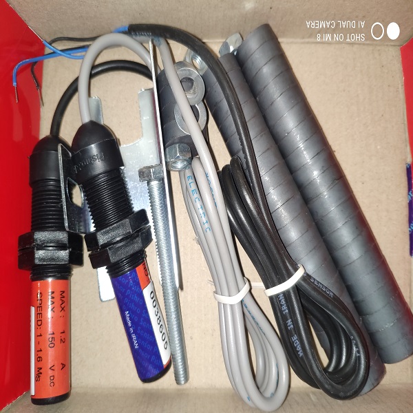سنسور پلاستیکی شناسایی پیشرو تعداد دو عدد داخل باکس به همراه پایه نصب فلزی به همراه آهن ربا مخصوص 5 توقف